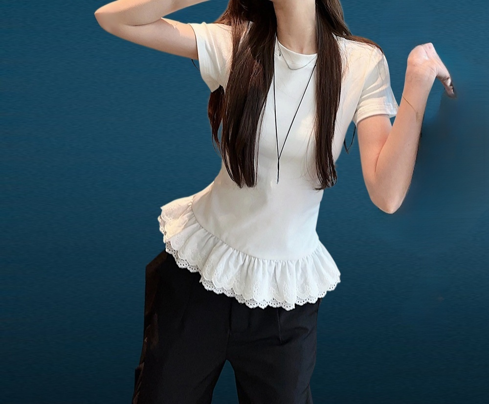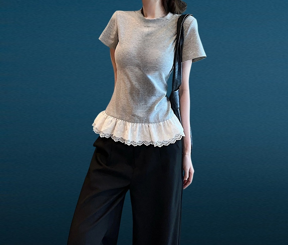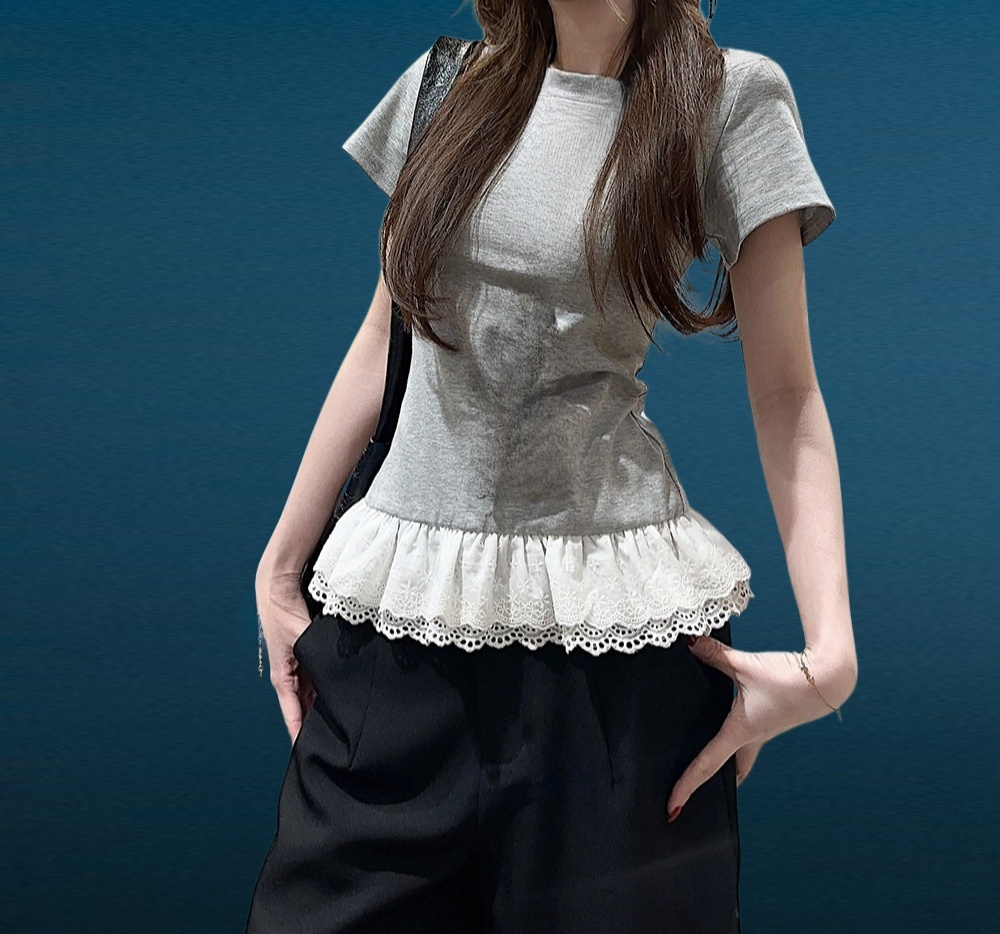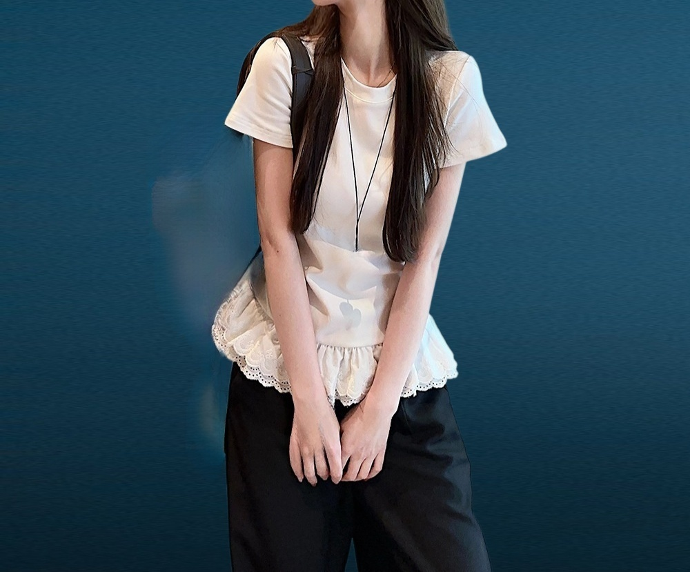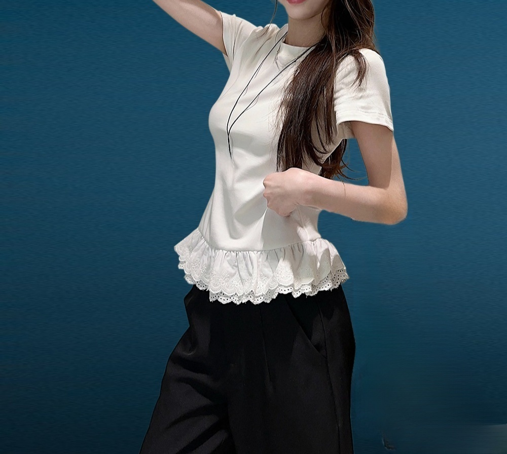 เสื้อลูกไม้ปะติดแขนสั้น