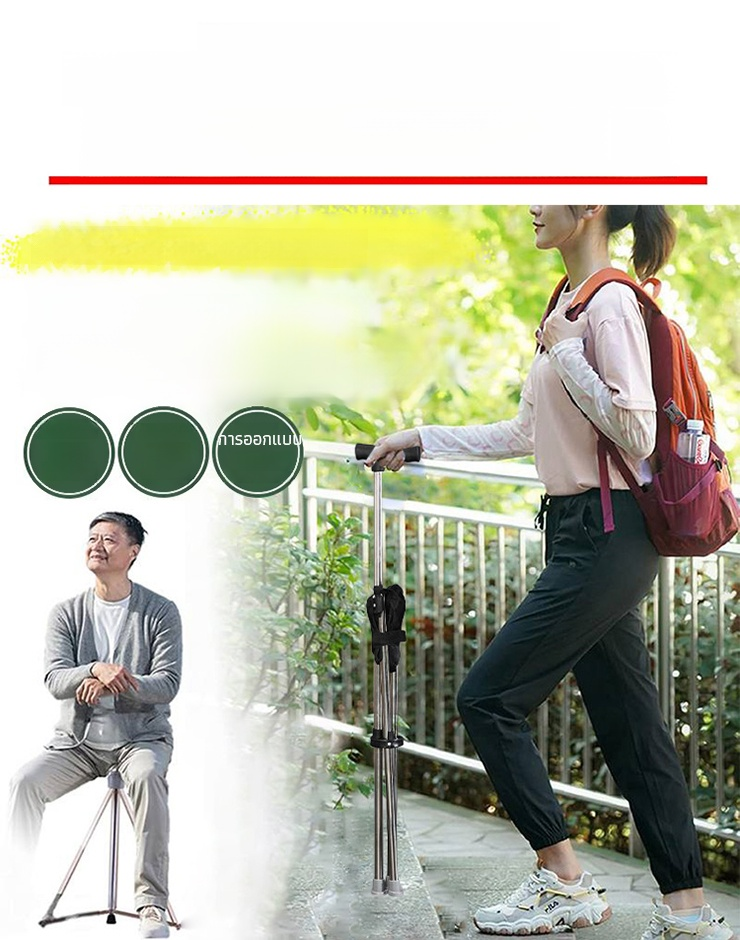 คนที่ชอบออกข้าวนอกไม่อยากยืนนานๆให้ปวดขา หรือ ผู้สูงอายุที่ต้องการไม้เท้า ที่ปลอดภัยหายห่วง . พกง่าย พับง่าย น้ำหนักเบา แข็งแรง ทนทาน พกไว้จะทำให้ชีวิตง่ายขึ้น