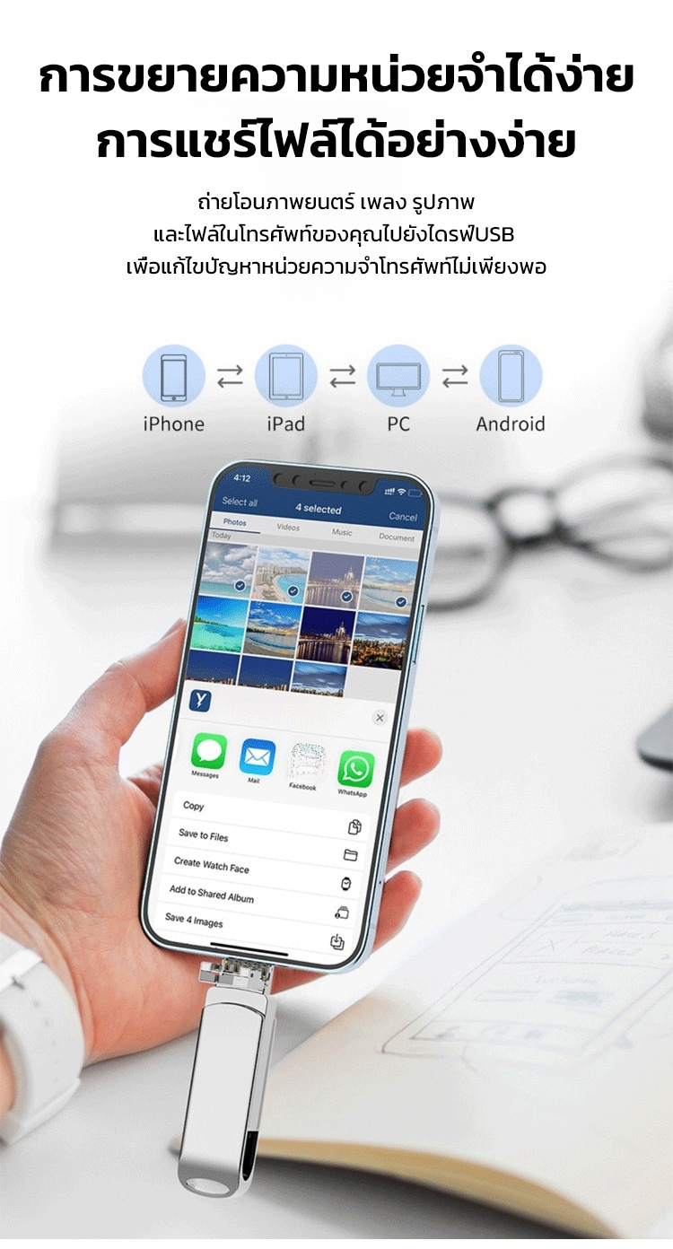 📱✨ สวัสดีเพื่อนๆ! เพิ่มพื้นที่เก็บข้อมูลกันเถอะ! 🎉แฟลชไดร์ฟความจุใหญ่แบบ4ใน1สำหรับขยายหน่วยความจำโทรศัพท์มือถือ