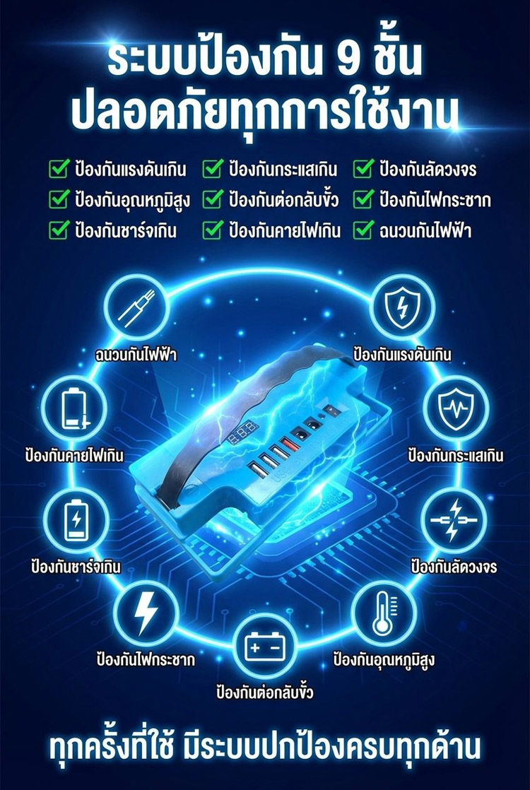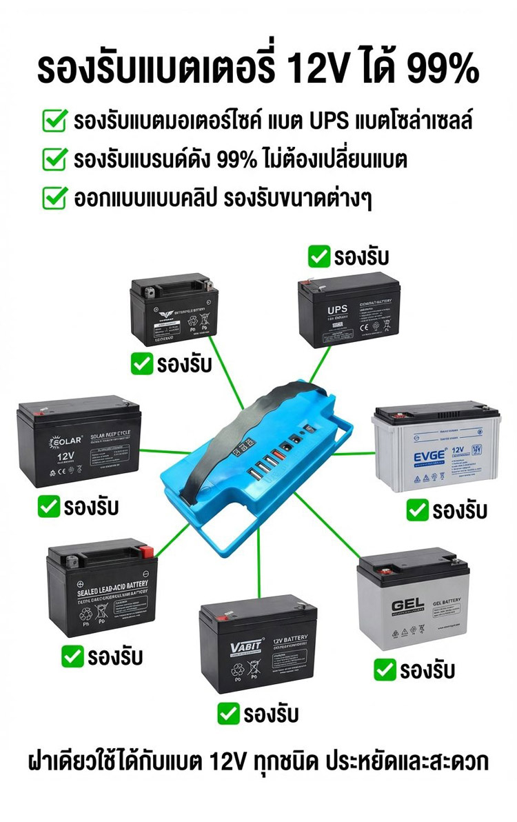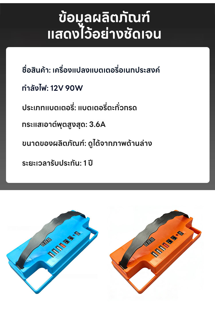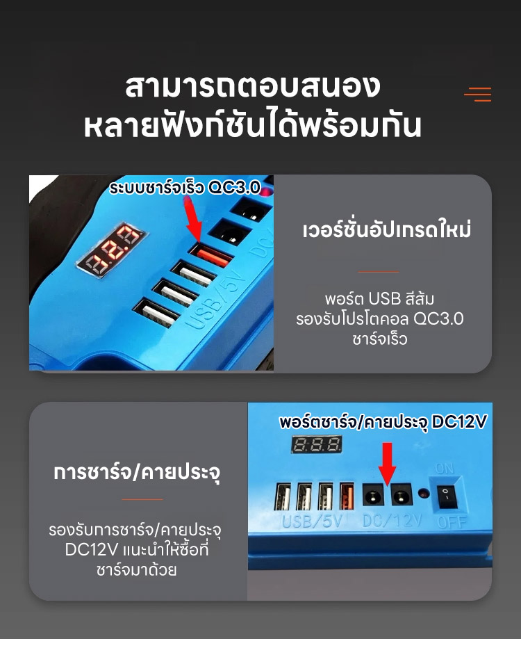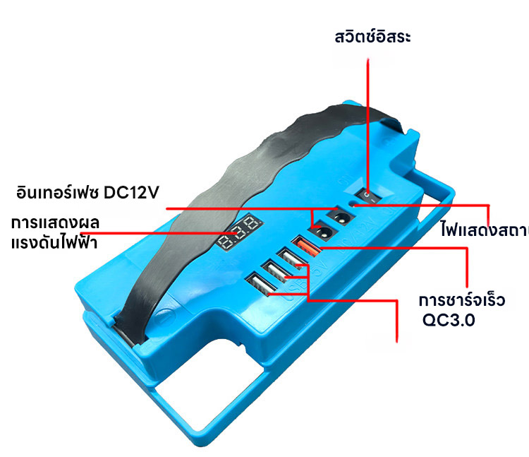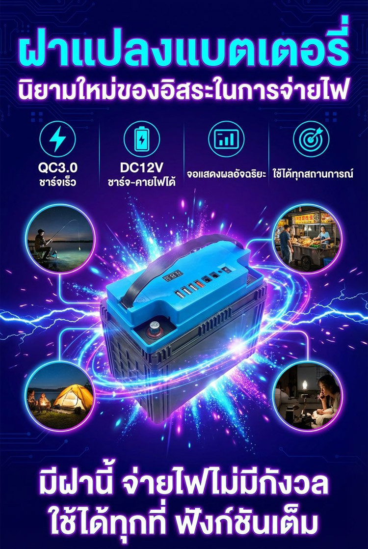 ไม่ต้องใช้ปลั๊กพ่วง! ❌ ปลดปล่อยศักยภาพสูงสุดของแบตเตอรี่! 🚀 แสดงระดับแบตเตอรี่อัจฉริยะ! 📟 ไม่ต้องถอดแบตเตอรี่! 🛠️ ชาร์จเร็วสุดๆ QC3.0! ⚡ พอร์ตหลายช่องสำหรับจ่ายไฟพร้อมกัน! 📱 ไอเท็มที่ต้องมีสำหรับร้านค้าข้างทางและการตั้งแคมป์! ⛺ ส่องสว่างยามค่ำคืนราวกับกลางวัน 💡 ตัวเลือกยอดนิยมของประเทศไทย บริการเก็บเงินปลายทาง รับประกันคืนเงินหากไม่พอใจ 🤝