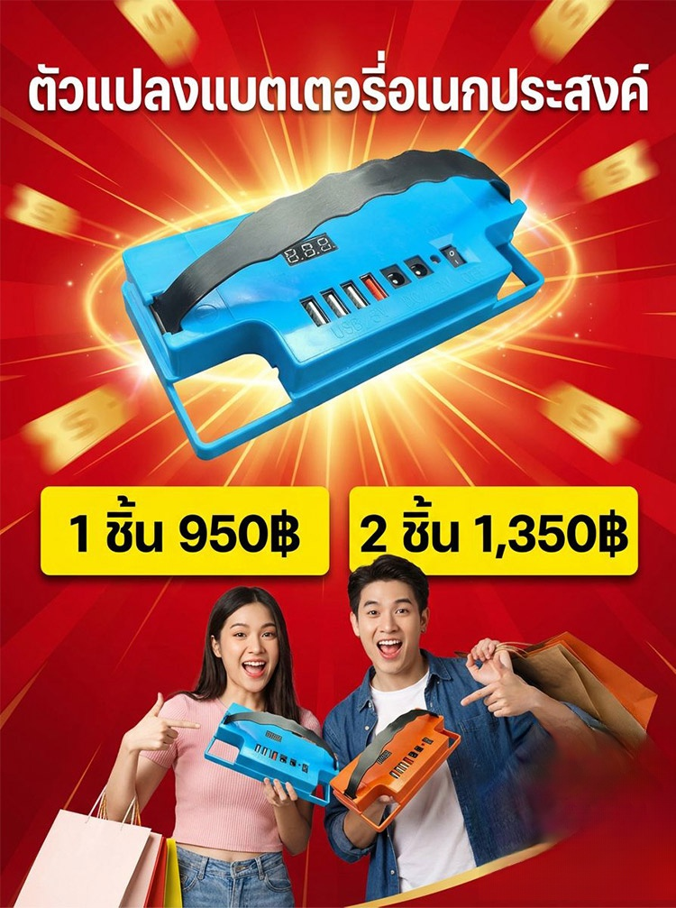 เครื่องแปลงแบตเตอรี่อเนกประสงค์🔋เปลี่ยนแบตเตอรี่เก่าของคุณให้เป็นสถานีชาร์จเร็ว! 🔋 บอกลาสายไฟพันกัน กลายมาเป็นอุปกรณ์อเนกประสงค์ใน 1 วินาที ✨